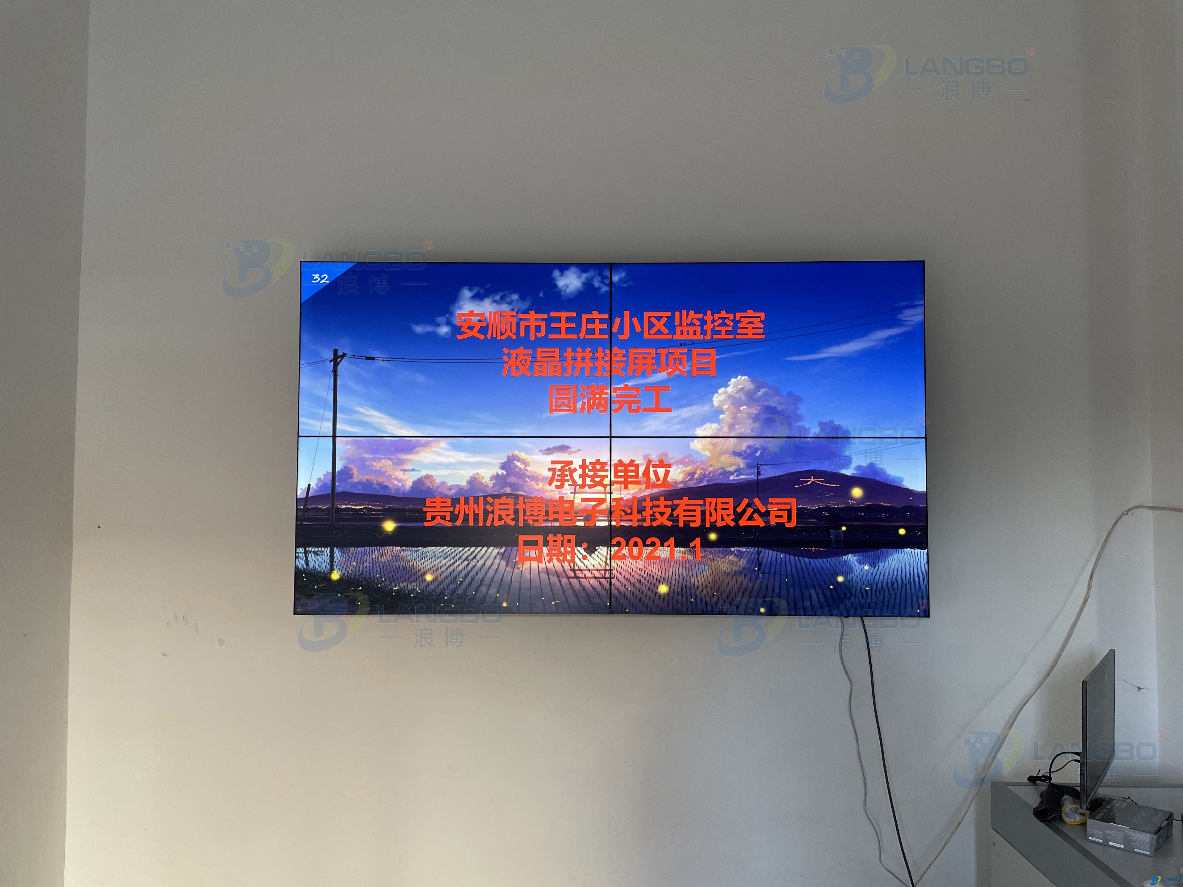 热烈祝贺安顺市王庄小区监控室液晶拼接屏项目